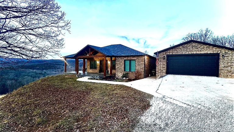 This custom brick home blends timeless elegance with modern design, featuring rick wood beam detailing that adds warmth and character to the exterior. The striking contrast of the black garage compliments the natural tones of the brick, creating a sophisticated yet welcoming look.